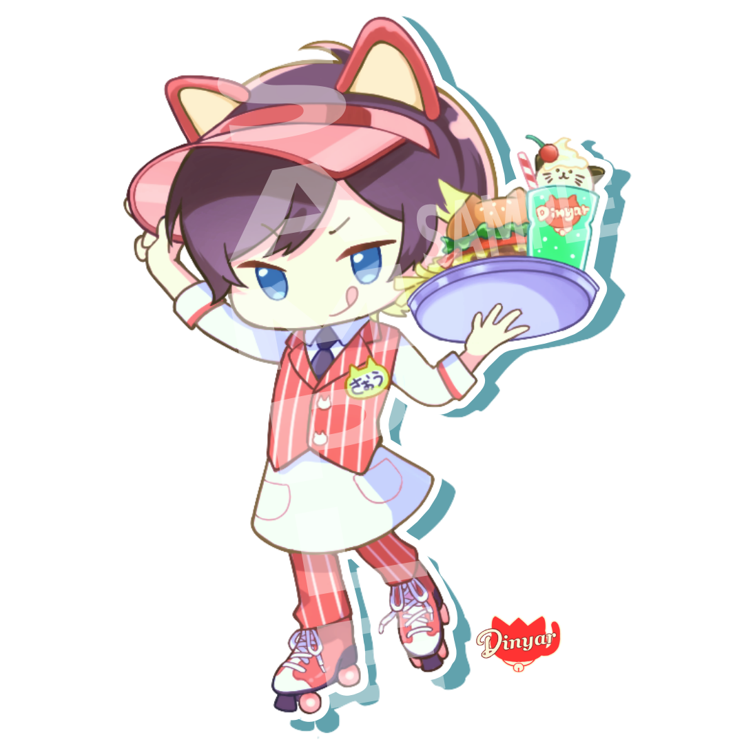 今回はウェイターに扮したさおうが名物のメロンソーダフロートとハンバーガーを運んでいる書き下ろしイラストになっています!